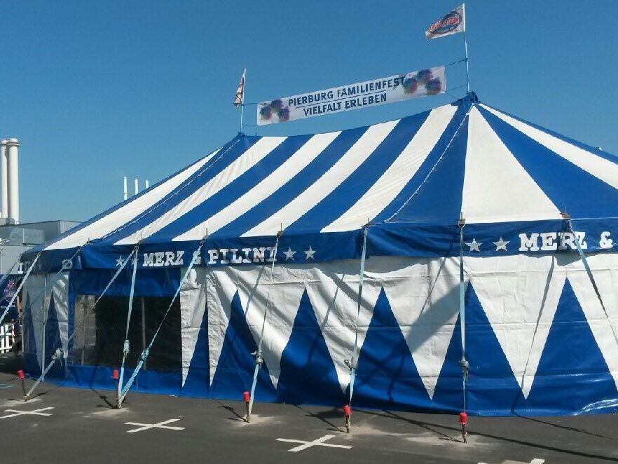 Nice smaller party or theater tent. For this tent, there is also a matching 7 x 10m oval awning. Both tents can be connected with a connecting tunnel. This makes them ideal for events where, for example, the catering/cloakroom etc. is to be outsourced.