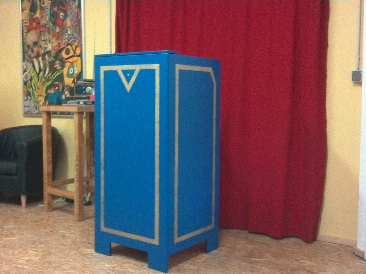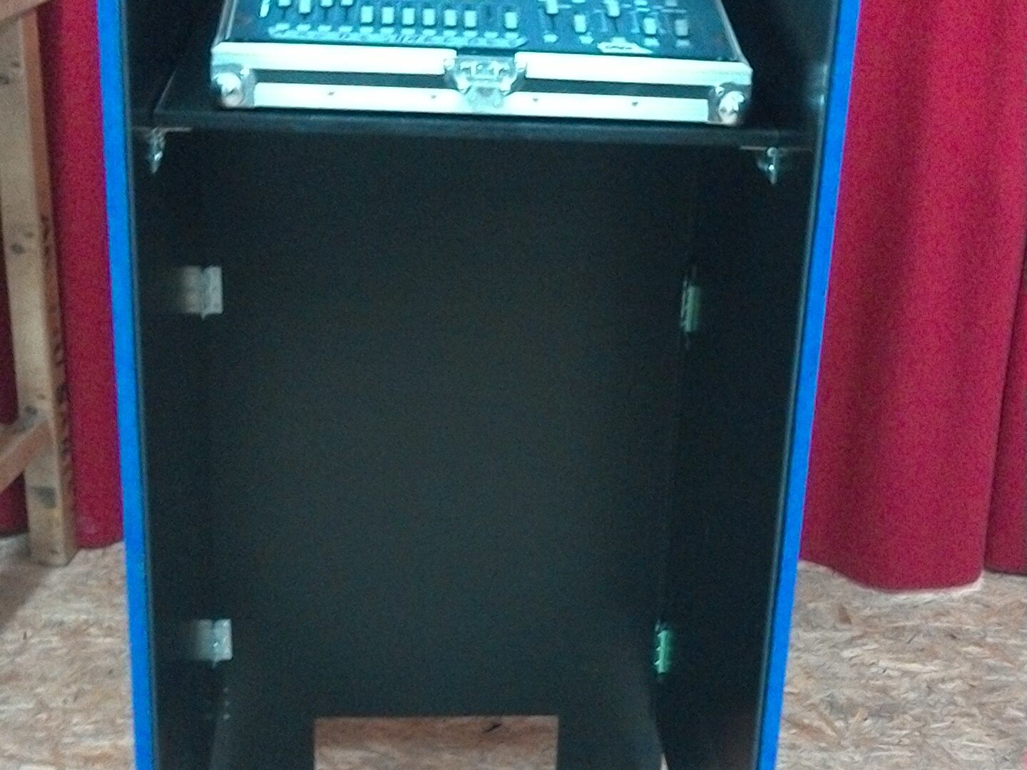 Rack apron for a 19′ case with shelf for e.g. 1 mixing console laptop etc. LED lighting for the shelf is built into the top panel. Can therefore also be used as a lectern.