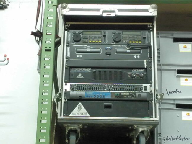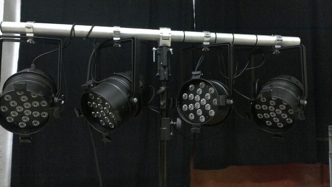 Professional lighting system consisting of 2 X 4 PAR 64 Tri-LED (18 x 3W) spotlights.